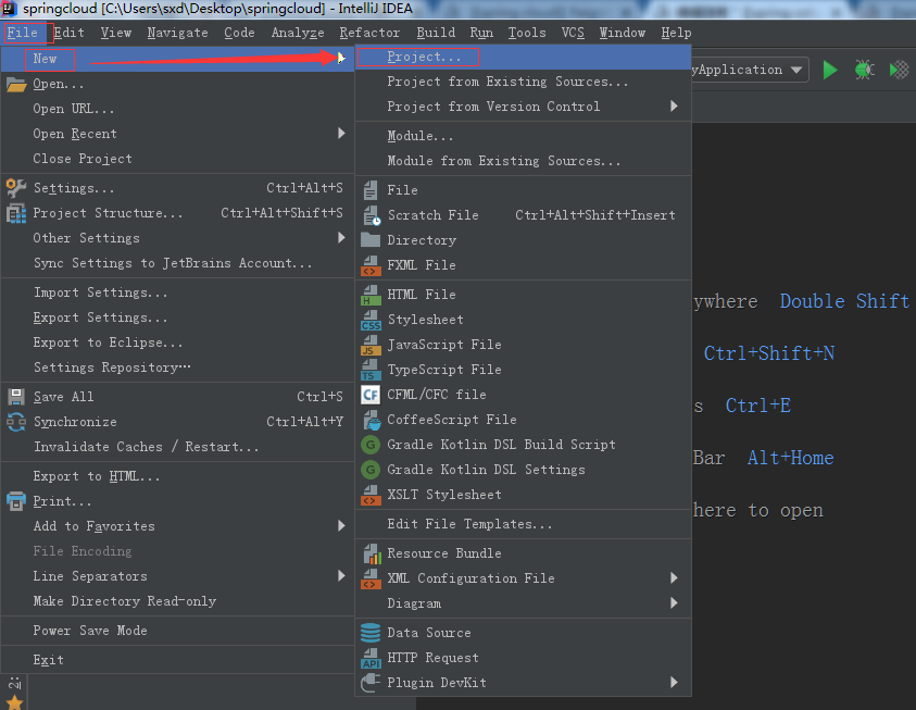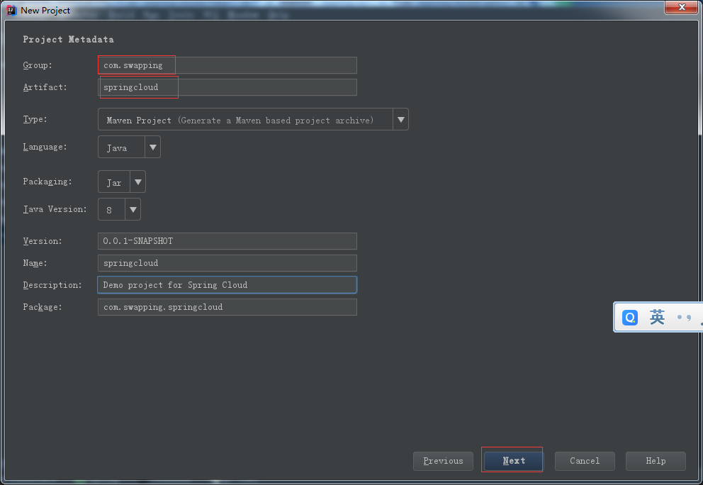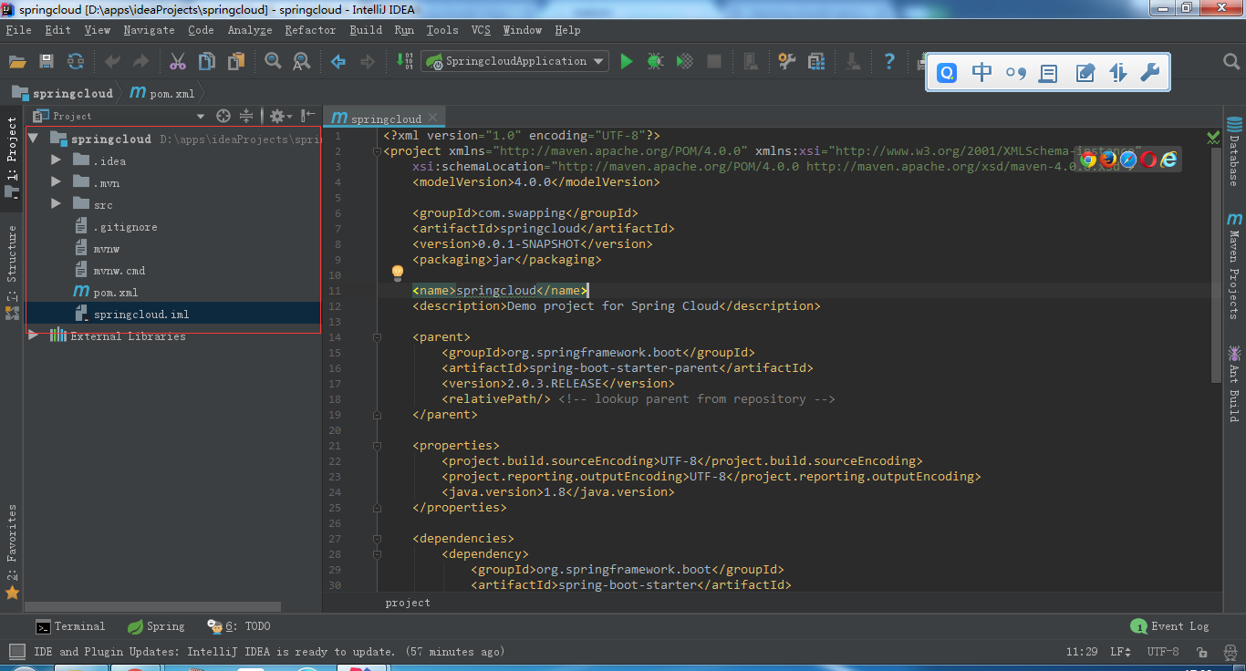1.idea上创建一个新的spring boot项目,名字就叫spring cloud