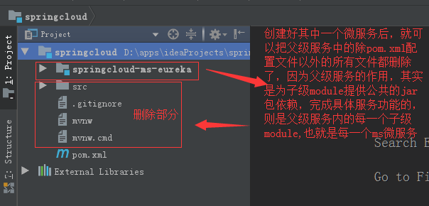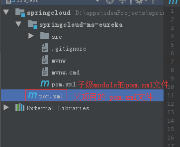 OK,可以看出来。现在子级module已经成功创建了,但是 并不是说这个eureka子级项目在springcloud父级项目下,就是父子级了,必须得声明一下,他们的父子级关系,