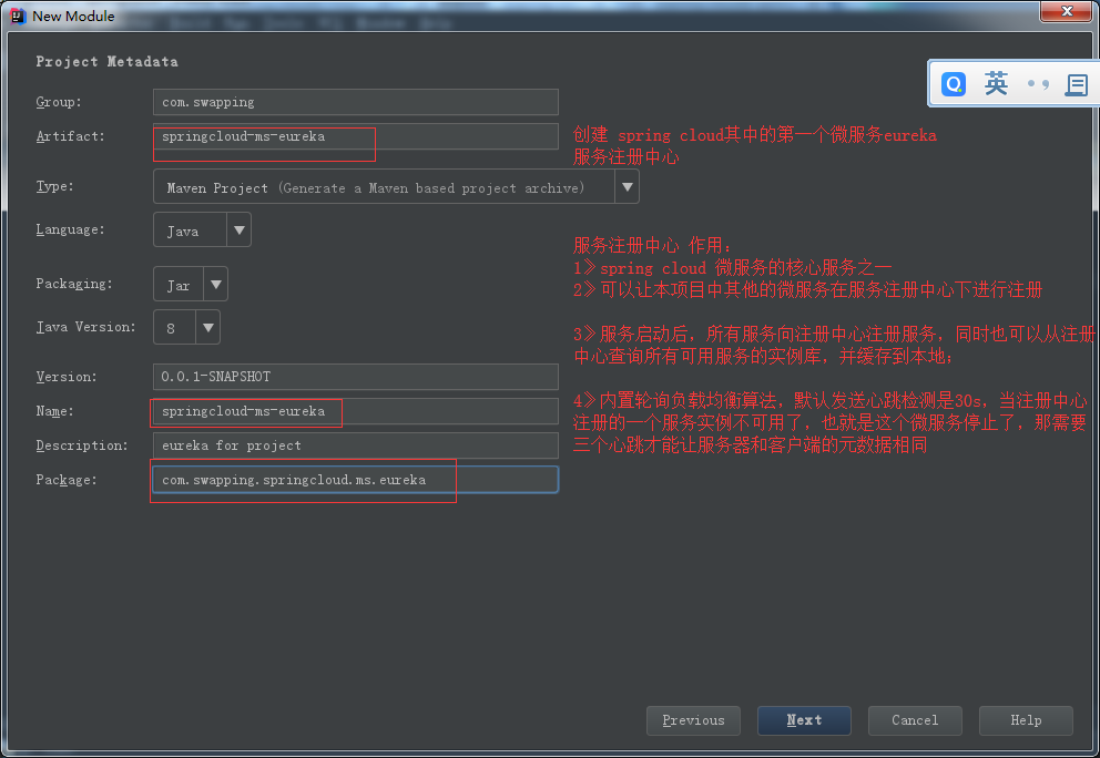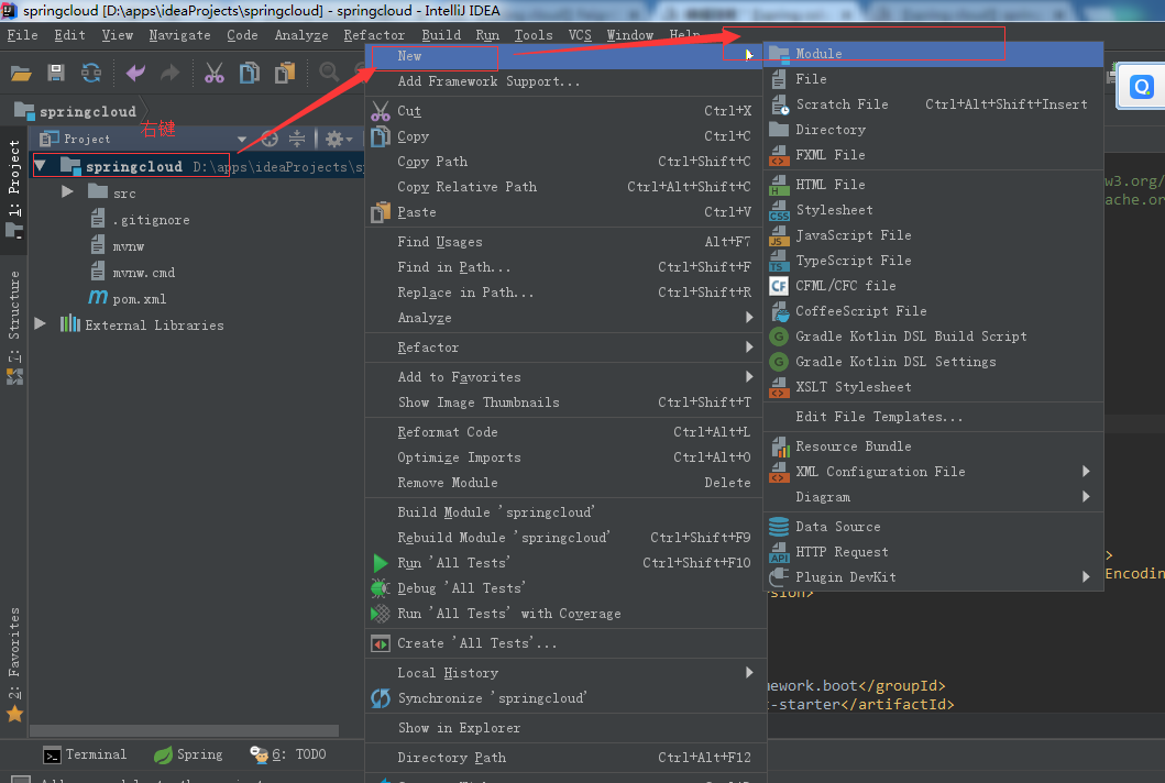 好了,现在进行第二步,在刚刚创建的项目上右键 创建子项目模块【Eureka 服务注册中心】