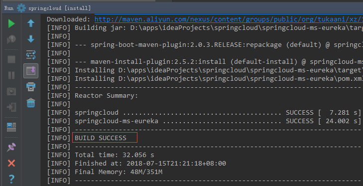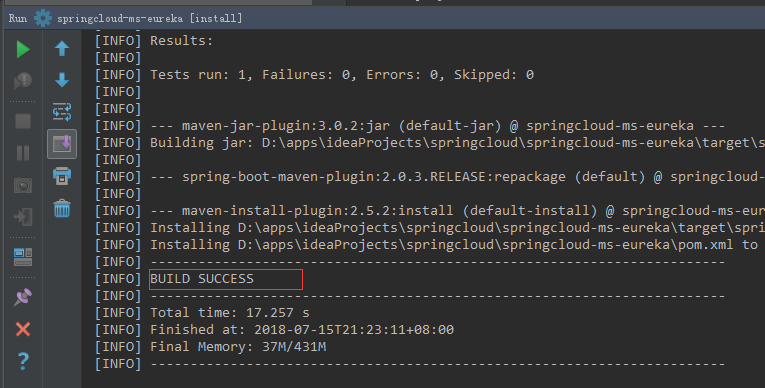 OK,外层的父级项目打包成功后,轮到了内层的eureka,咱们要建集群的微服务进行打包