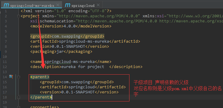 第二步》》》在子级的pom.xml文件中进行声明