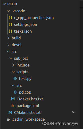 PCL01是工作空间,带有.catkin_workspace的包