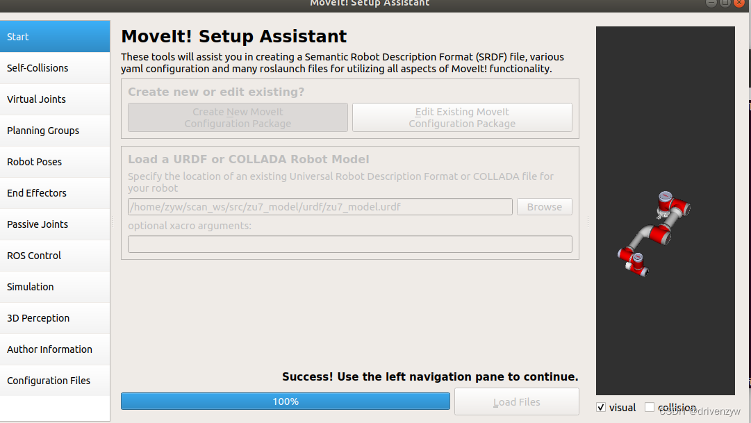 2.选择urdf文件然后开始配置