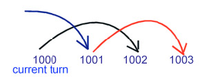 同一年,2001的GDC大会上,“帝国时代”的开发者Mark Terrano和Paul Bettner针对RTS游戏提出了优化版的锁步协议[9]。早在1996年他们就开始着手于帝国时代1的开发,不过很快就发现在RTS游戏中的网络同步要比其他类型游戏(比如FPS)复杂的多,一是游戏中可能发生位置变化的角色非常多,必须要合理的减少网络同步带宽,二是玩家对同步频率极为敏感,每一秒的疏忽都可能影响局势。所以,他们在传统 Lockstep(当时仍然没有Deterministic Lockstep这个概念)的基础上做了优化,首先保持每一步只同步玩家的操作数据,然后对当前的所有命令延迟两帧执行的方法来对抗延迟。具体来说,就是第K步开始检测到本地命令后会推迟到第K+2步进行发送和执行,K+1步收集到的其他客户端命令会推迟到K+3步去执行,每K步执行前会去判断本地是否有前两步的命令,如果有就继续推进。(关于具体的推进策略,论文里面写的不是很清楚,这里加入了作者自己的判断)