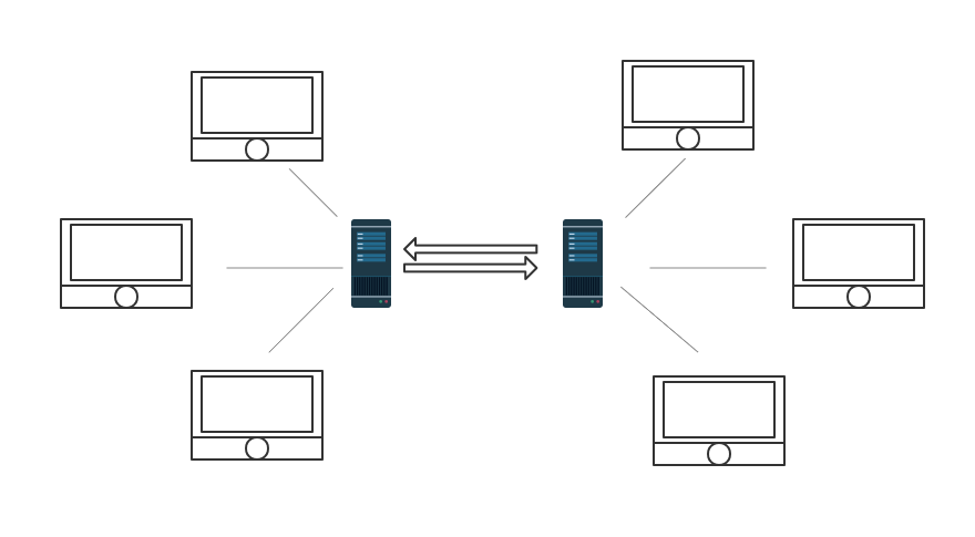 在2000年后,Eric Cronin的团队在传统多服务器的架构上[2]提出来镜像服务器模型[3]。这种模型提供了多个服务器的拷贝,避免单点崩溃影响到所有玩家的问题。类似CDN,玩家还可以选择就近的服务器进行通信,降低了通信延迟。不过,这种方式增加了服务器的租用和维护成本,在后续的游戏网络架构中并没有被大量使用,倒是WEB服务器广泛采用这种模型并不断将其发扬光大。