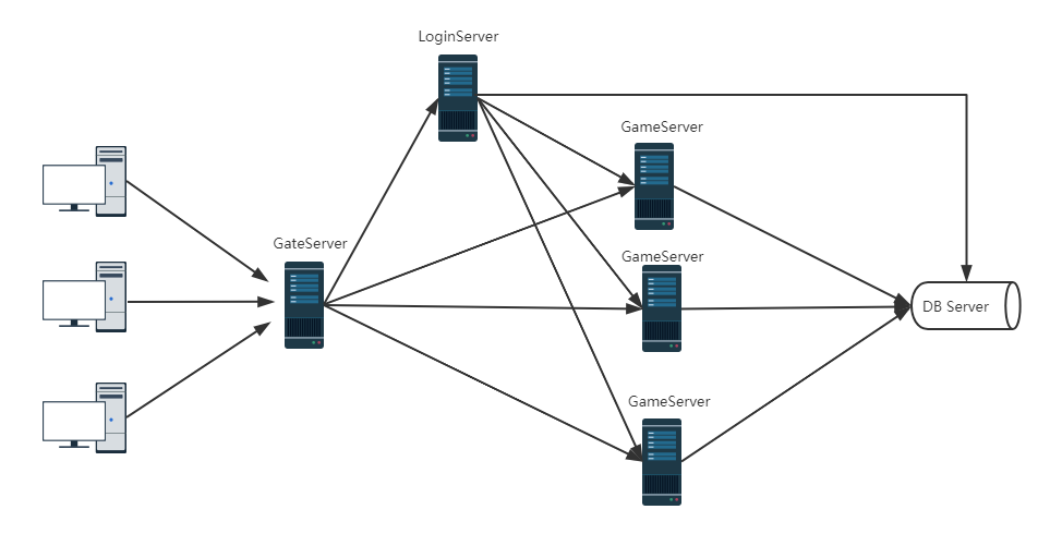 再后来,游戏服务器架构不断发展。游戏存储负载和网络连接负载随后从逻辑服上拆分出来,形成独立的服务;玩家数量增多后,又将游戏拆分成多个平行世界,出现了分服和跨服;游戏逻辑进一步复杂后,又开始按照功能去划分成网关服务器、场景服务器、非场景服务器等。我们今天讨论的网络同步几乎都是在逻辑服务器(基本上无法拆分)上进行的,所以后续的这些架构方式与网络同步的关系并不是很大,这里就不再赘述。