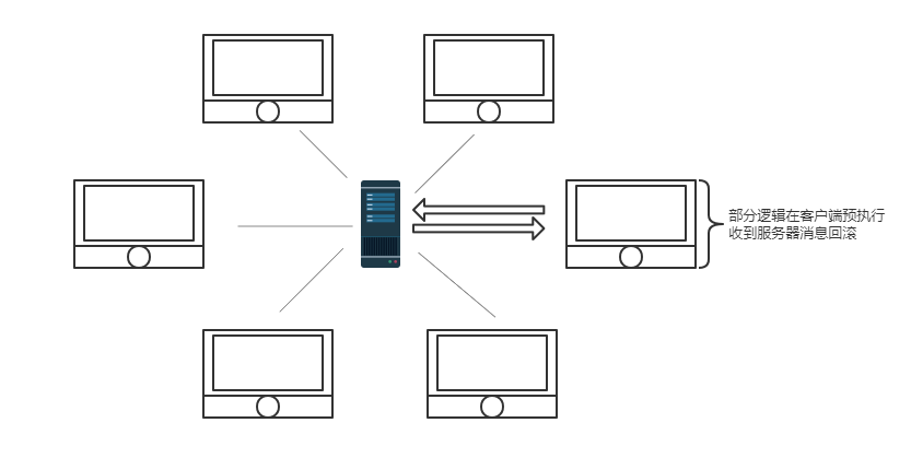 后来一些游戏团队(比如id software)又对CS架构做了进一步调整,先是将大部分的逻辑处理移到服务器上(服务器可能是一个独立的无窗口的后台程序),客户端只负责渲染。随后为了对抗网络延迟提升客户端的流畅性,又把一部分逻辑交回给客户端本地预执行,最终成为很多经典游戏和引擎的架构方式。
