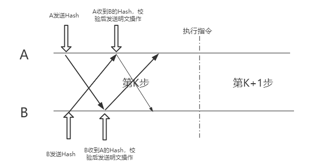 - 待本地客户端接收到所有其他客户端的第K步预提交哈希值之后,再发送自己第K步的明文信息