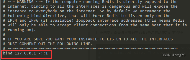 备注:如果想要设置指定IP连接redis,只需要修改redis.conf文件中bind配置项即可。如果不限IP,将127.0.0.1修改成0.0.0.0即可。