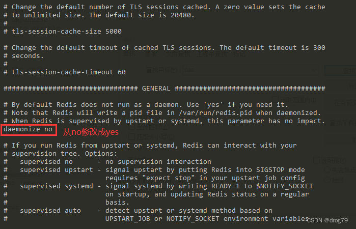 # 第一步:从 redis 的源码目录中复制 redis.conf 到 redis 的安装目录 cp /root/redis-6.2.6/redis.conf /usr/local/redis/bin/ # 第二步:修改redis.conf配置文件 cd /usr/local/redis/bin/ vi redis.conf # 修改内容如下: #daemonize 的值从 no 修改成 yes # 第三步:启动服务 ./redis-server redis.conf # 第四步:查看进程来确定redis是否启动成功,非必须 ps -ef |grep redis