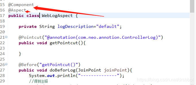 首先我们要有切面类: 关于pom文件等会提供个下载连接