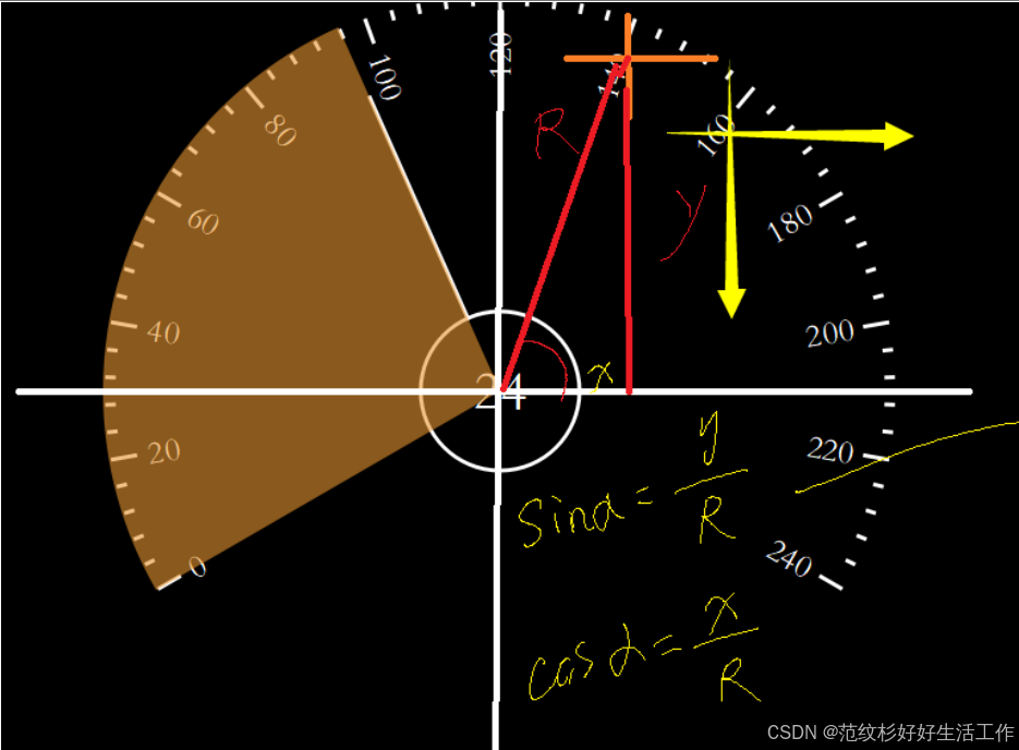 painter.drawPie(rentangle,(360-150)*16,-angle*61*16);//angle前面取 负数,为了让