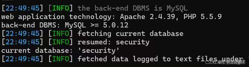 当前数据库名称为 security,继续获取当前用户名称