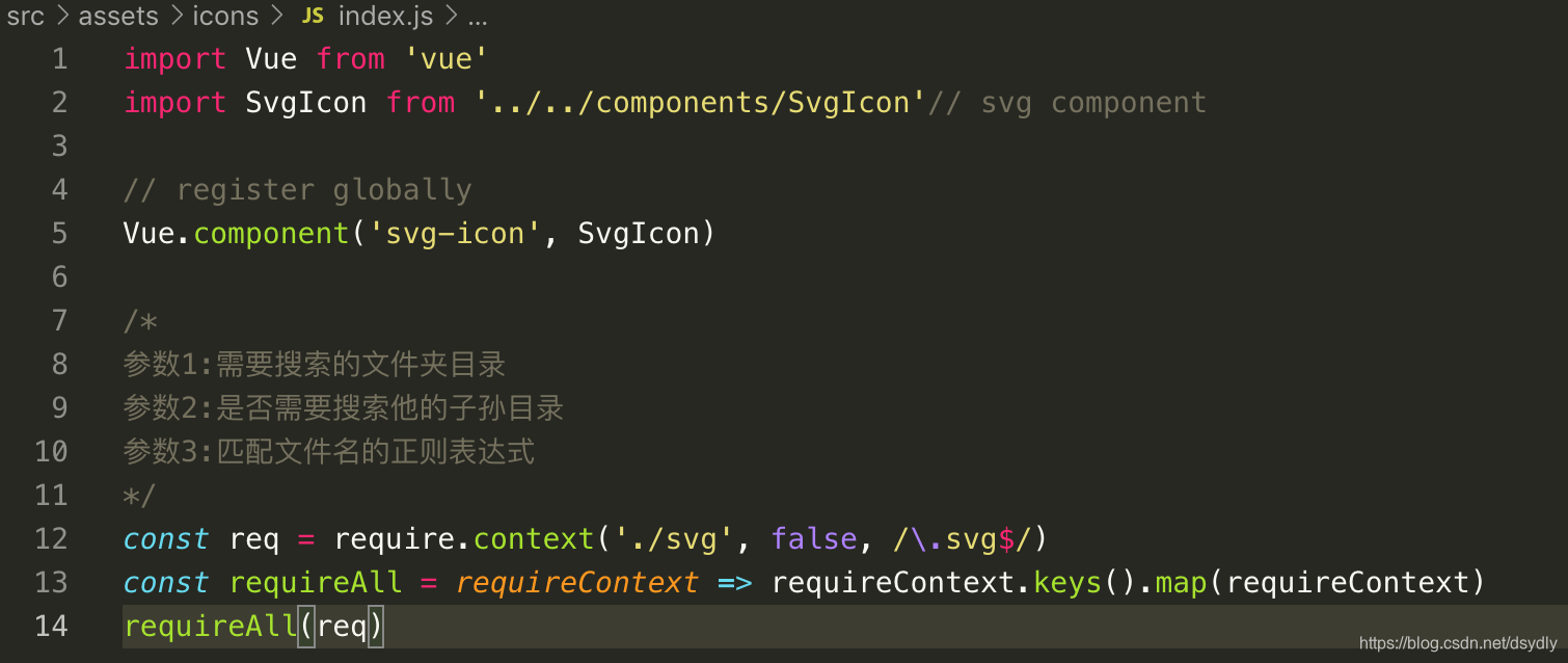 1)index.js中代码功能,注册全局标签,并获取所有的svg文件,index.js中的代码如下:
