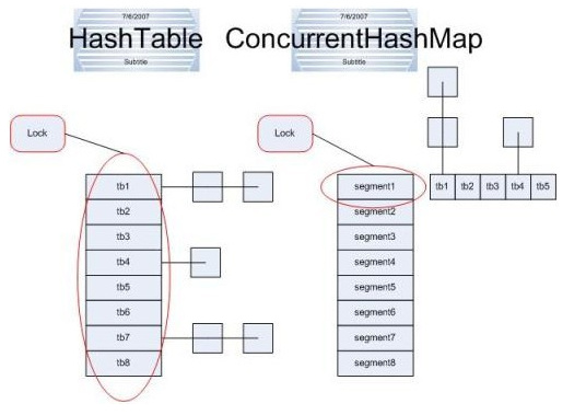 1)Hashtable中采用的锁机制(Synchronized)是一次锁住整个hash表,从而同一时刻只能由一个线程对其进行操作;