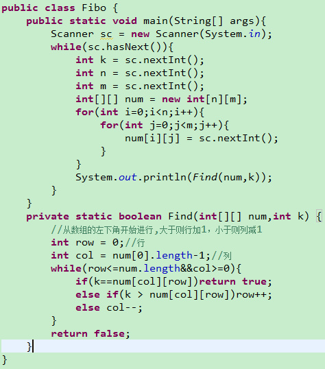 1、在数组的左下角开始查找