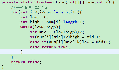 2、二维数组二分查找,每一行都进行二分查找