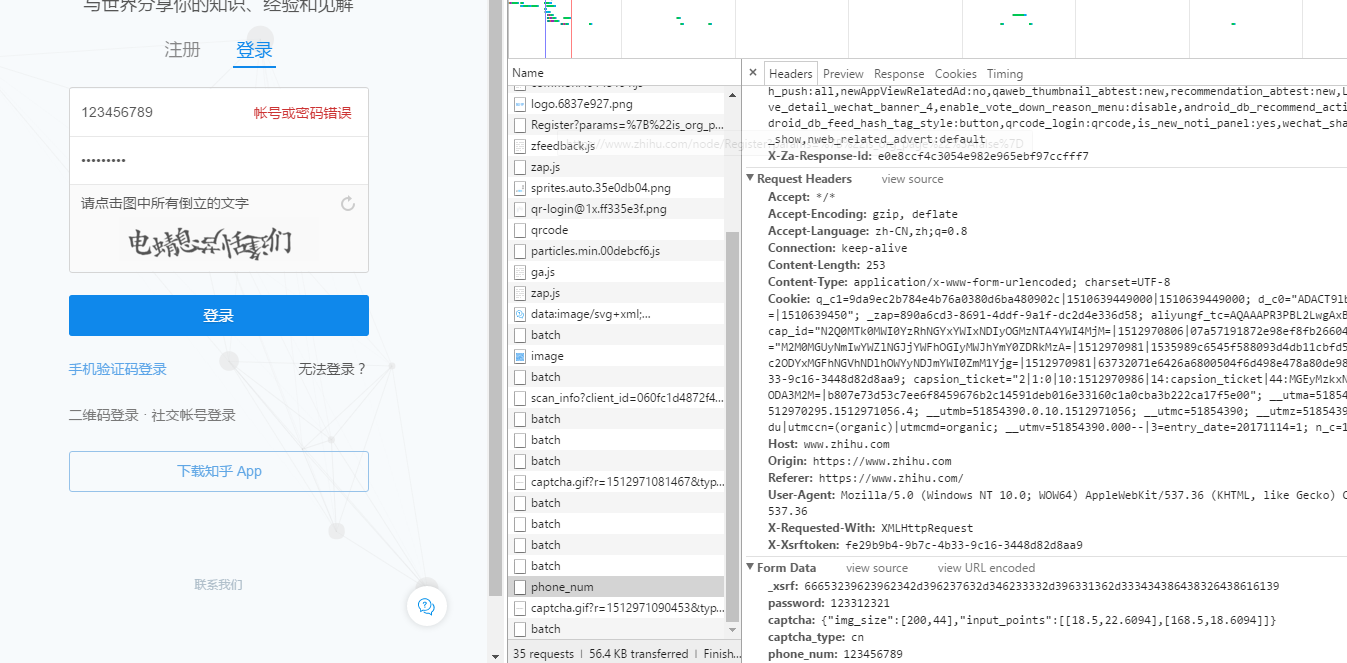可以发现请求是Post : https://www.zhihu.com/login/phone_num
