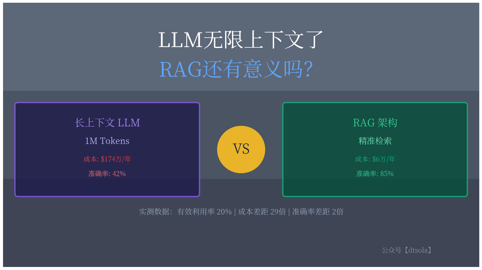 更重要的是,这引发了一个更深层次的问题:既然LLM已经拥有了如此超长的上下文窗口(GPT-5的400K,Gemini 2.5的1M),RAG(检索增强生成)技术是否还有存在的意义?