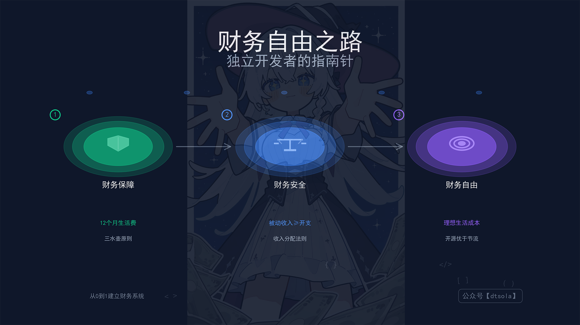 因此,我结合书中的核心理念和自己的实践经验,整理出这套专门针对独立开发者的财务规划框架。希望能帮助更多技术创业者,从 0 到 1 建立自己的财务系统,让我们不仅能写出好代码,也能管理好财富。