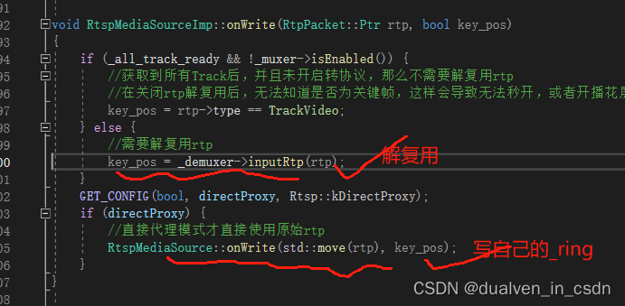 MediaServer.exe!mediakit::RtspMediaSourceImp::onWrite(std::shared_ptr<mediakit::RtpPacket> rtp, bool key_pos) 行 100 C++