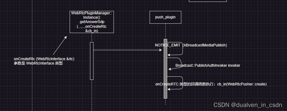 cb(*rtc); // 发送answer SDP给web端