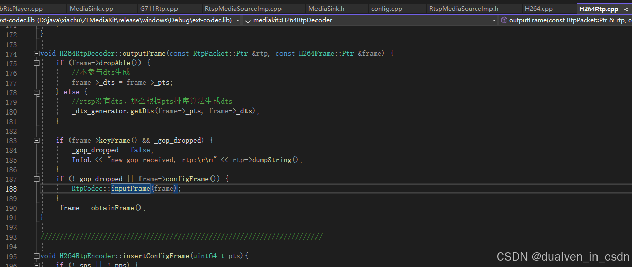 H264RtpDecoder::outputFrame -> RtpCodec::inputFrame(