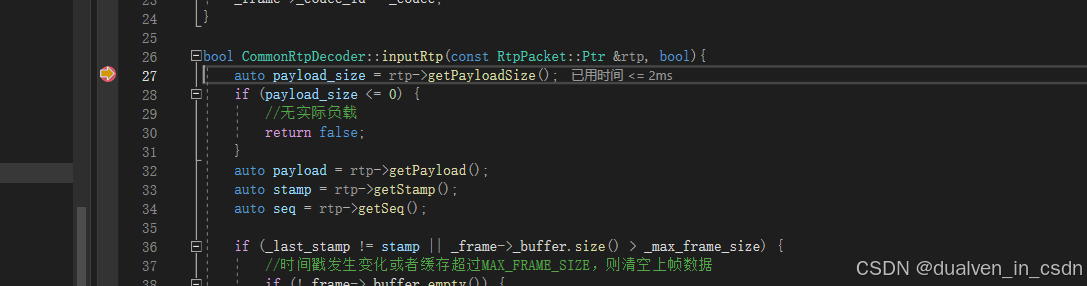 MediaServer.exe!mediakit::WrappedRtpTrack::inputRtp(const char * buf, unsigned __int64 len, unsigned __int64 stamp_ms, mediakit::RtpHeader * rtp) 行 1057 C++