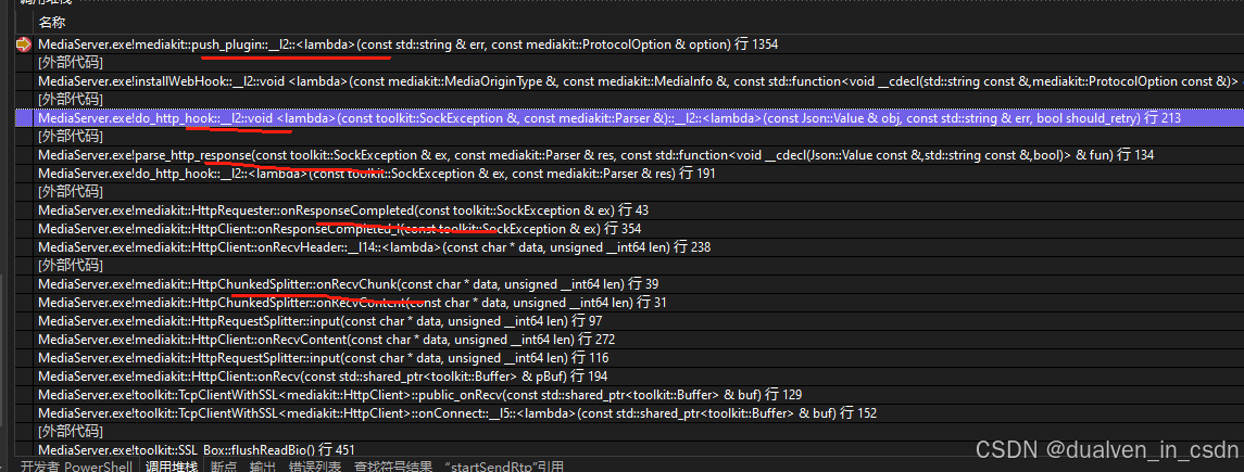 MediaServer.exe!parse_http_response(const toolkit::SockException & ex, const mediakit::Parser & res, const std::function<void __cdecl(Json::Value const &,std::string const &,bool)> & fun) 行 134 C++