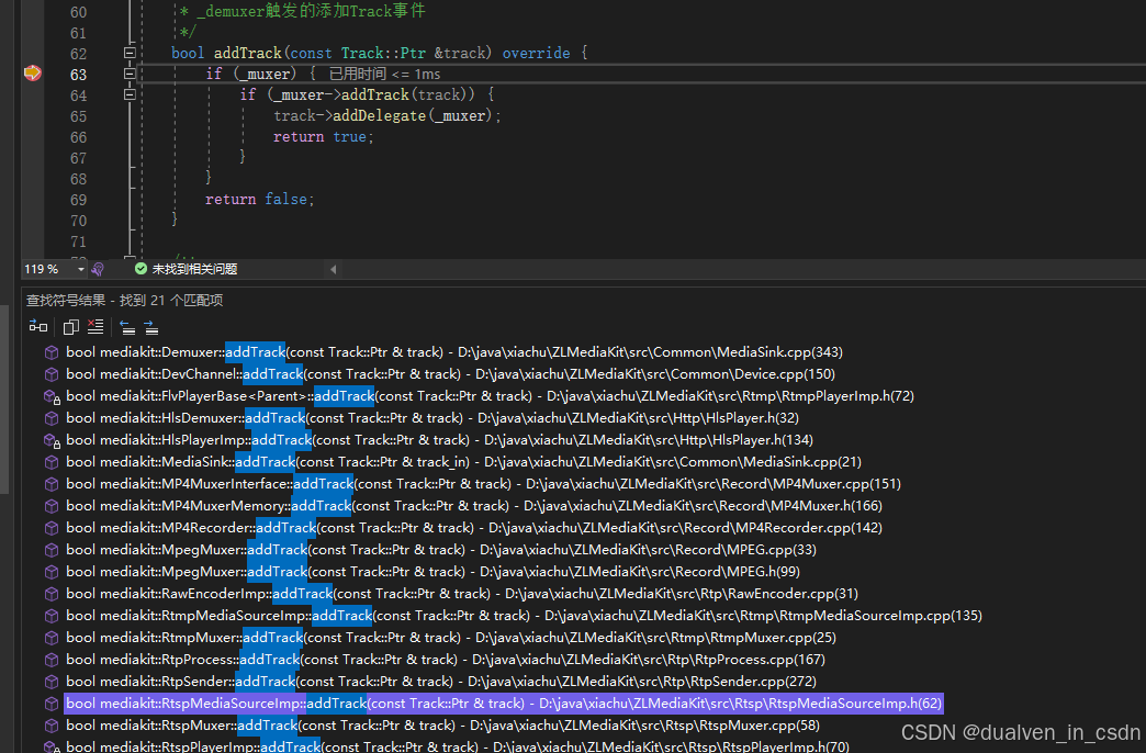 MediaServer.exe!mediakit::RtspMediaSourceImp::addTrack(const std::shared_ptr<mediakit::Track> & track) 行 64 C++