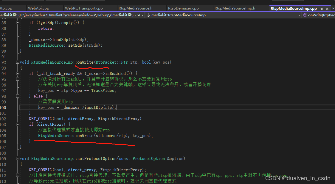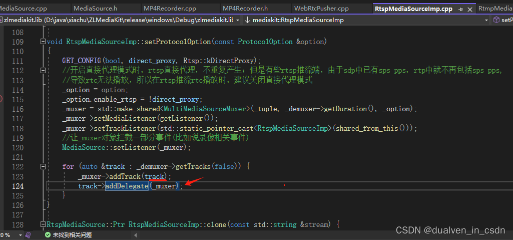 解释下这里:如果是代理模式,才会直接把rtp包放ringbuffer里,供 类似 webrtc play一样的命令来进行请求进行播放;但目前的模式,还是会经过 _demuxer进行解码,然后通过 MultiMediaSourceMuxer里的(rtmp,rtsp,mp4)等要求的编码格式 进行编码 。当然这里的rtspMuxer对它自己来说,自己的rtspDemuxer弄出来的frame又给它来了一遍,放到ringbuffer里了