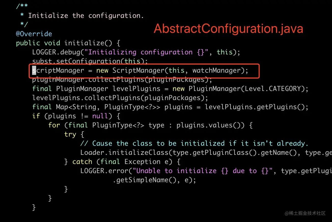 那是哪个坑货中间件引入的呢?debug 一下马上就找到了原因,原来是臭名昭著的 log4j2,用了这么多年 log4j,头一回知道,原来 log4j2 是支持 javaScript、Groovy 等脚本语言的。