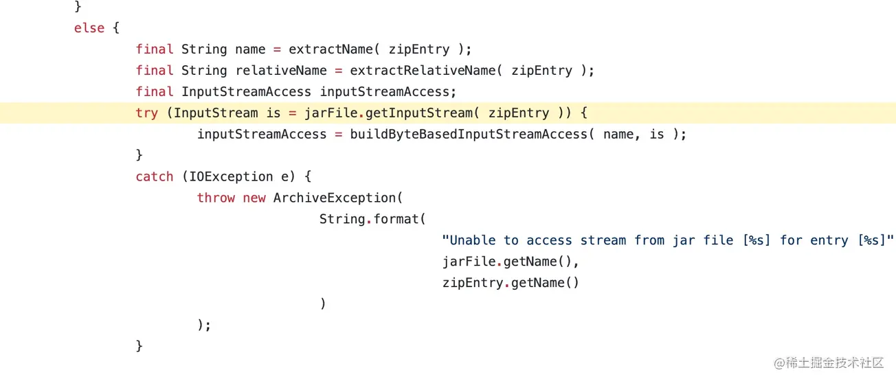 找到这个函数对应代码 org.hibernate.jpa.boot.archive.internal.JarFileBasedArchiveDescriptor#visitArchive#146