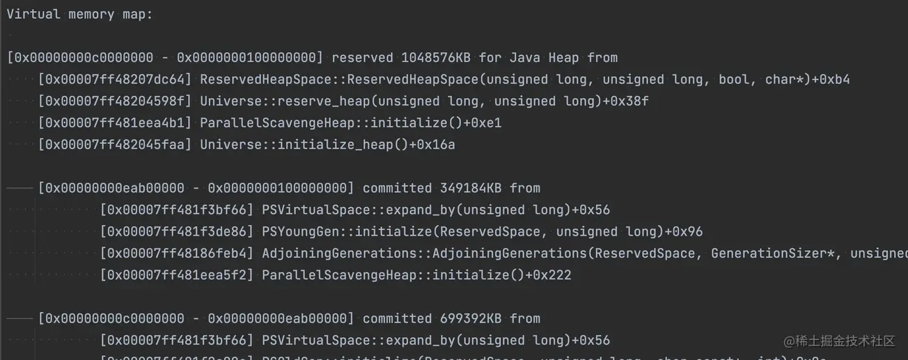NMT 工具的地址输出 detail 模式会把每个区域的起始结束地址输出出来,如下所示。