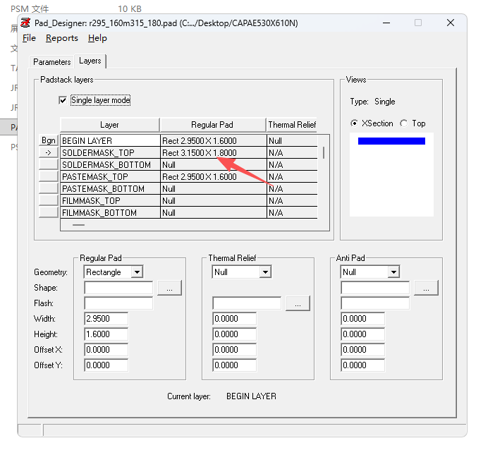 我们做硬件的都知道焊盘阻焊层需要比“BEGIN LAYER”要大0.2mm(也就是8mil),但是安装完LP Wizard 10.5软件后,阻焊层的实际大小和“BEGIN LAYER”是一样大的,需要修改一下才可以。