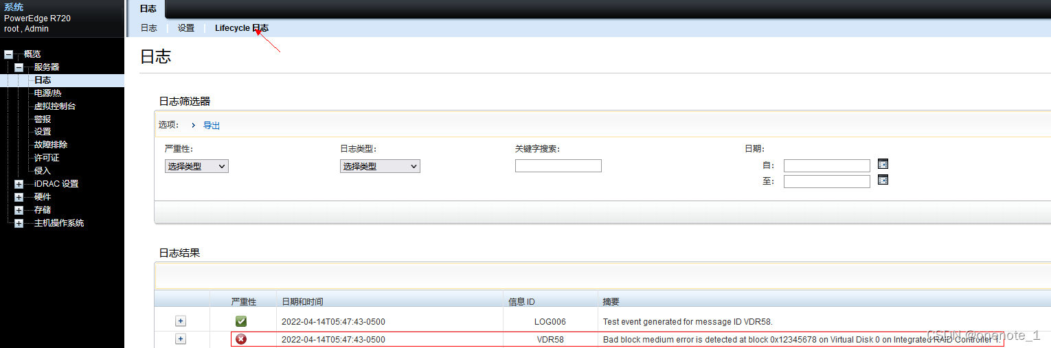 日志来源服务器:Dell PowerEdge R720