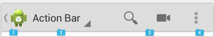 Action bar(动作栏)是一个导航控件,用以代替传统屏幕顶端的标题栏。ActionBar显示在屏幕顶部的控件,它包括了在左边显示的应用的logo图标和右边操作菜单的可见项。类似于windows桌面程序的工具栏。