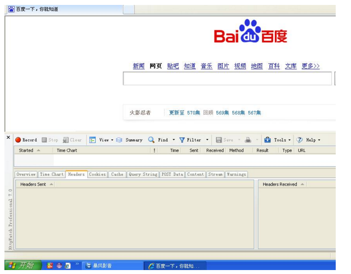 4、打开百度页面,搜索信息,观察Headers栏有什么变化?