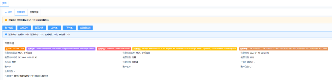 我们态感平台检测到windows server 2008系统上的MS17-010相关漏洞的编码,就会触发告警
