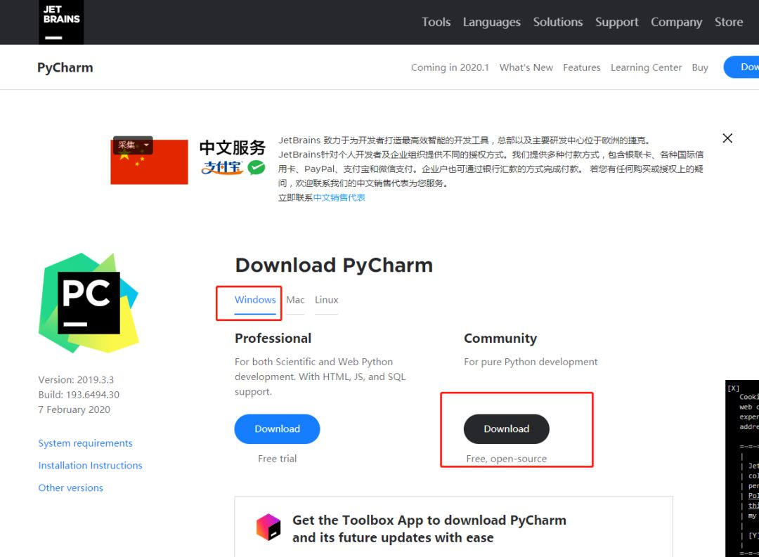 下载地址:https://www.jetbrains.com/pycharm/download/#section=windows