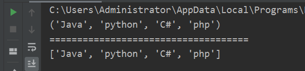 元组与列表类似,不同之处在于元组的元素不能修改。元组使用小括号,以逗号隔开,也是可以存储不同类型的数据,但是尽量存储同类型数据,列表使用方括号。