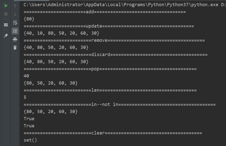# set.pop() 删除集合中的一个元素多次执行测试结果都不一样。