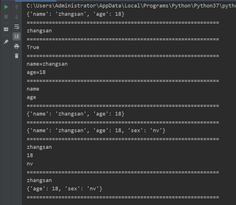 dict1 = {'name': 'zhangsan', 'age': 18}