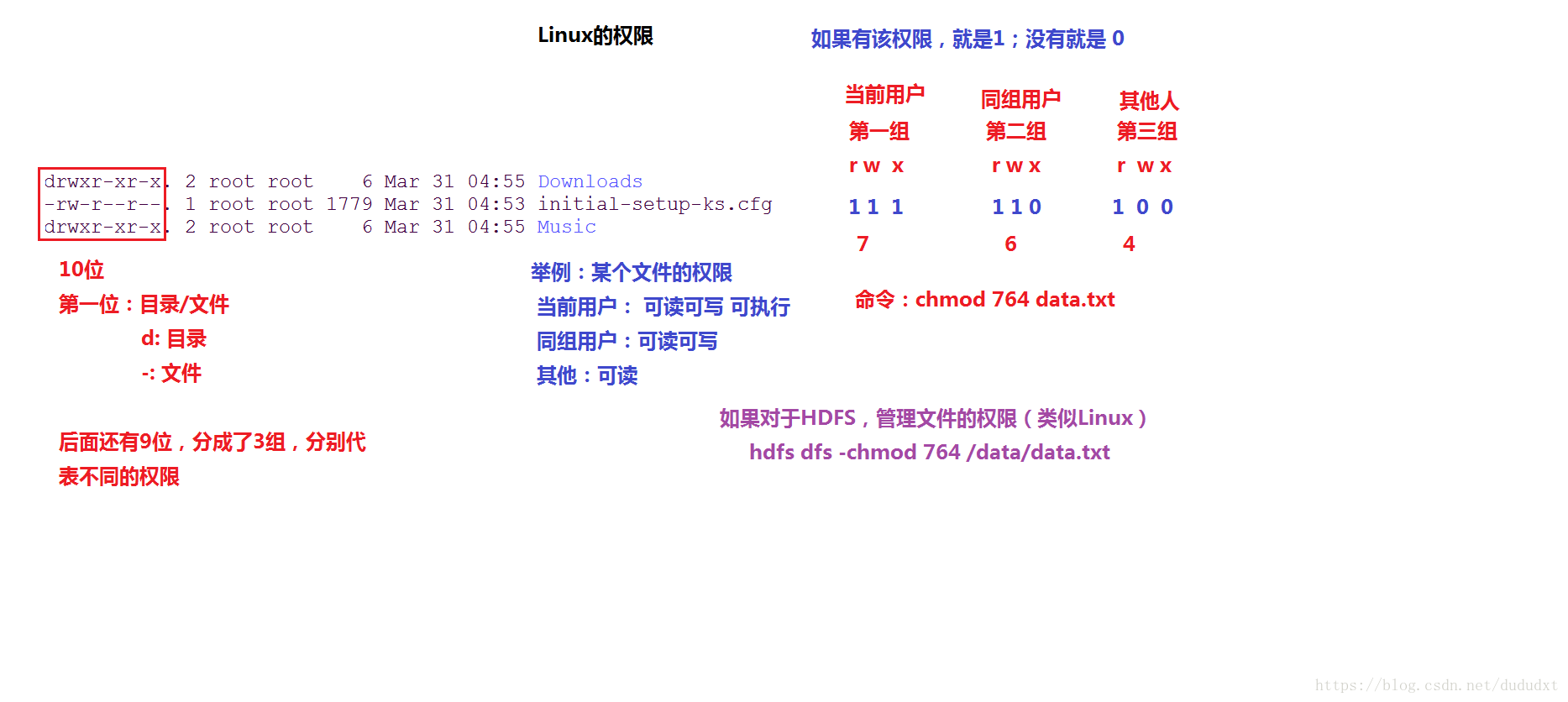 - chmod 【u 属主 g 所属组用户 o 其他用户 a 所有用户】 【+ 加权限 – 减权限 =加权限同时将原有权限删除】 【rwx】 文件或目录名