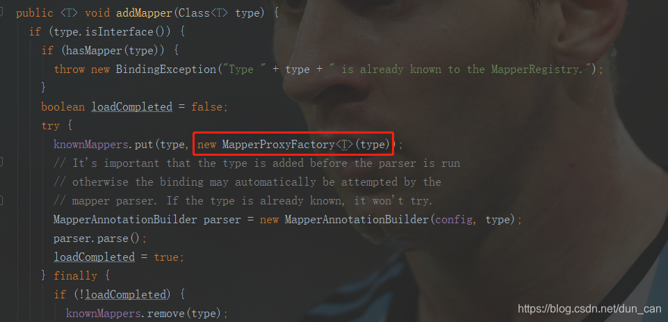 5、查看方法mapperElement,就能看到如下语句,addMapper()就是向注册中心注册Mapper接口
