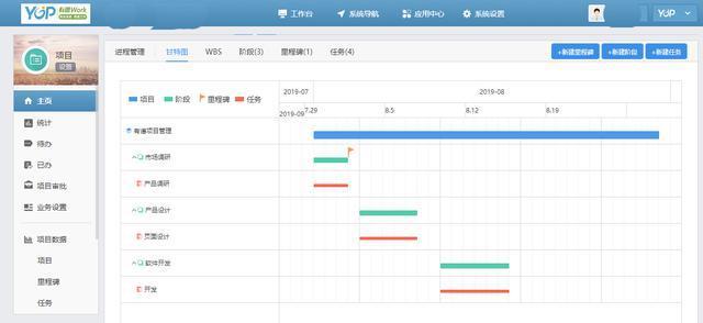 有谱项目管理具备完善的项目进程管理功能,包括实时的项目进度甘特图,项目的WBS功能拆解,可以根据规则将项目划分为若干阶段,在每个阶段内安排不同的任务及下级子任务,同时根据重要的项目目标,设置项目里程碑,对里程碑的完成情况进行完善的统计和汇总分析。
