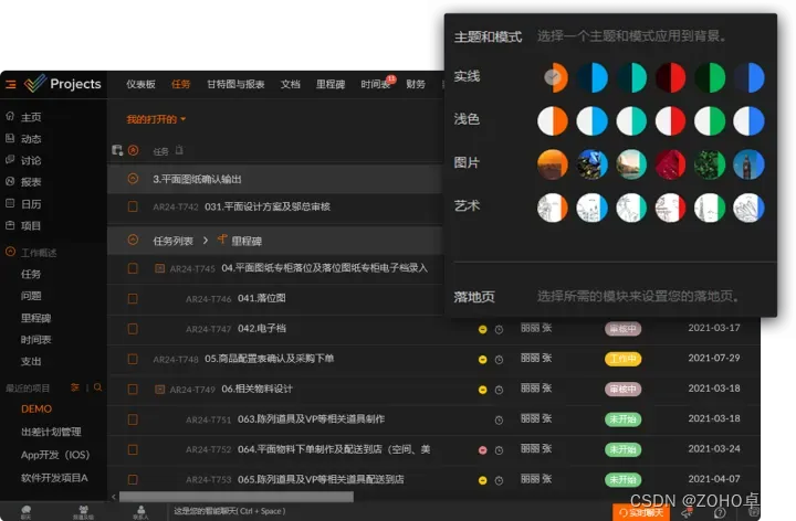 Zoho Projects的优势在于它的灵活性和可定制性,可以满足各种规模和需求的团队使用。它提供了直观易用的界面设计和强大的移动端应用,使得用户能够随时随地进行项目管理。