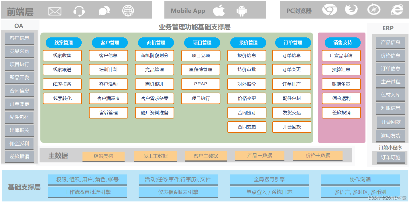CRM不是灵丹妙药,不能解决所有问题。在服务中,我们遇到过一些客户,他们想把企业信息化需要的所有场景和需求都在CRM里解决掉,分不清主次。