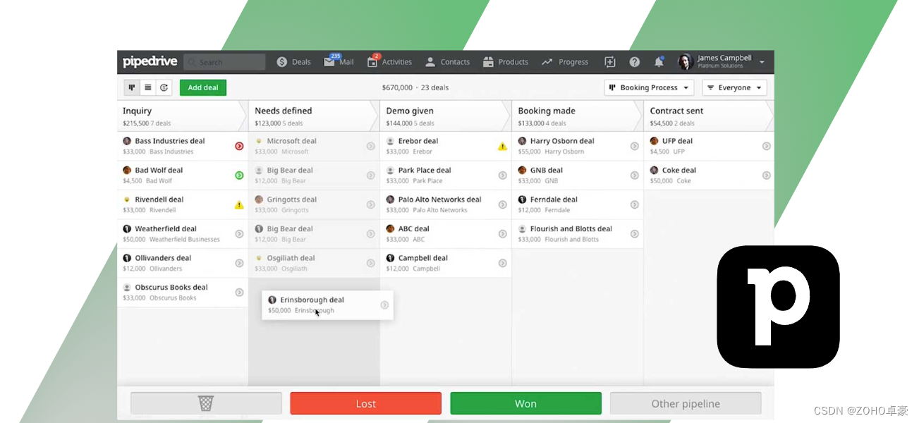 Pipedrive以可视化的方式更好地管理企业的联系人数据和销售流程。它提供了一系列功能,包括线索和交易管理、销售数据跟踪分析、移动应用,让小企业可以轻松管理其销售业务。