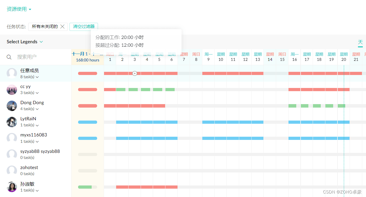 (3)在“项目报表”-“基础报表” 和“高级报表”中查看多视角下的任务状态;